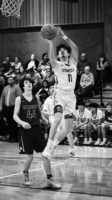 Our local 2A small schools league is as competitive as ever in recent memory. Stanfield Secondary School is just down the road from where I live, and both the boys and girls teams are just one win away from playing in the state tournament. And this shouldn’t come as a surprise. All four of their Fall sports teams went to state to compete in those tournaments. This is an athletic, well-rounded crew. The girls will beat you with their full court press and inside game. The boys will just beat you getting up and down the floor.